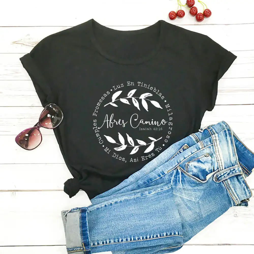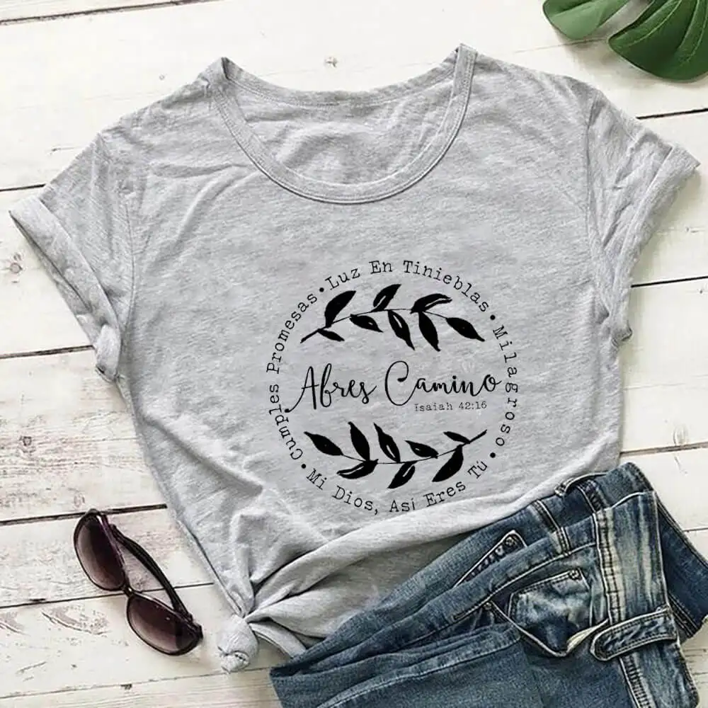 Испанский Waymaker христианской 100% хлопок печатных женщин футболка мексиканский летняя повседневная одежда с О-образным вырезом, короткий рукав Топ Faith рубашка испанская футболка