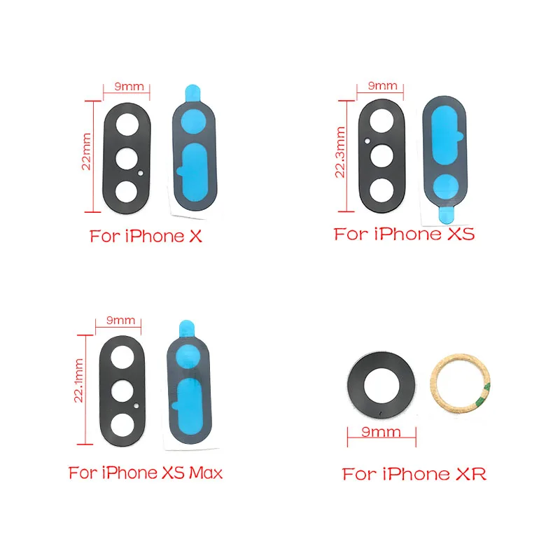 Стеклянный объектив задней камеры с сапфировым стеклом для iPhone 678 PlusXXR XsMax с наклейкой 3m, запчасти для ремонта, 1 шт.