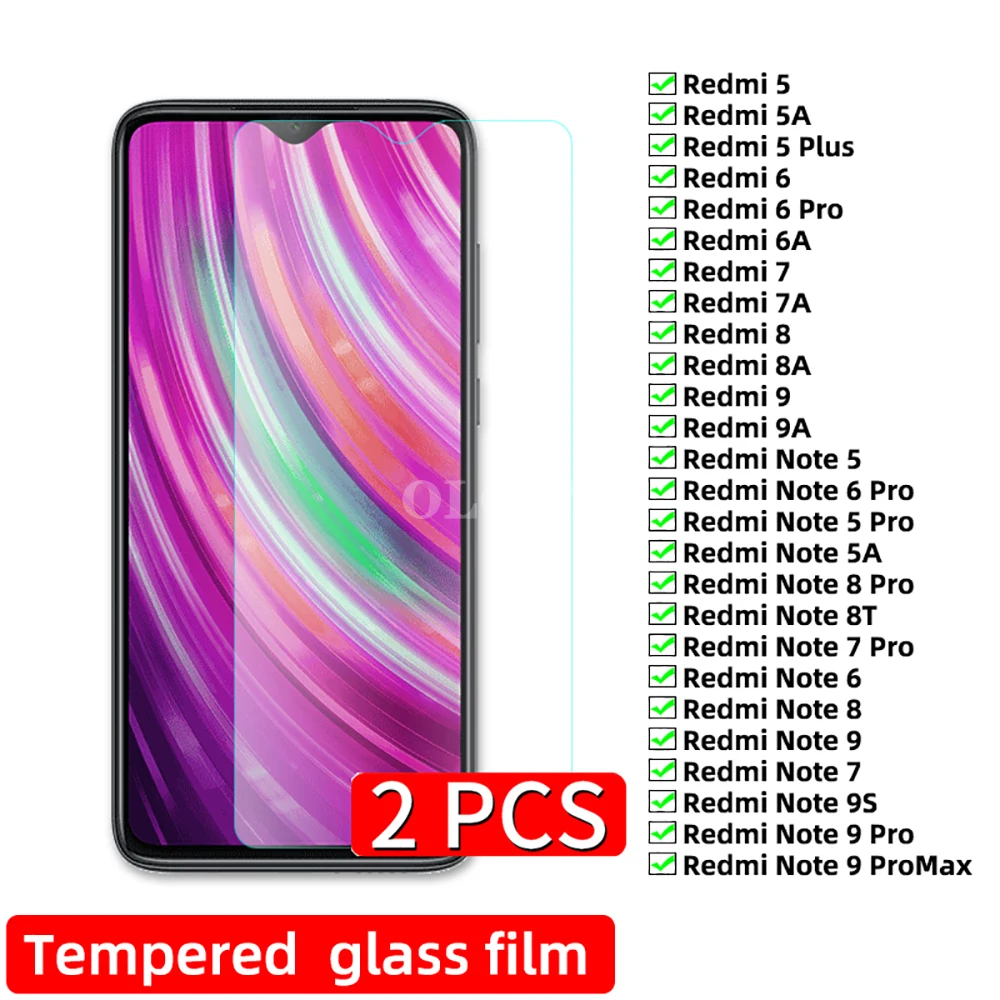 Пленка из закаленного стекла для Xiaomi Redmi Note 7 8 9 7A 8A 9A 8T 8 9 K20 K30S Pro Max 10x Xiami Xiaomi, Защитная пленка для экрана 9H, 2 упаковки