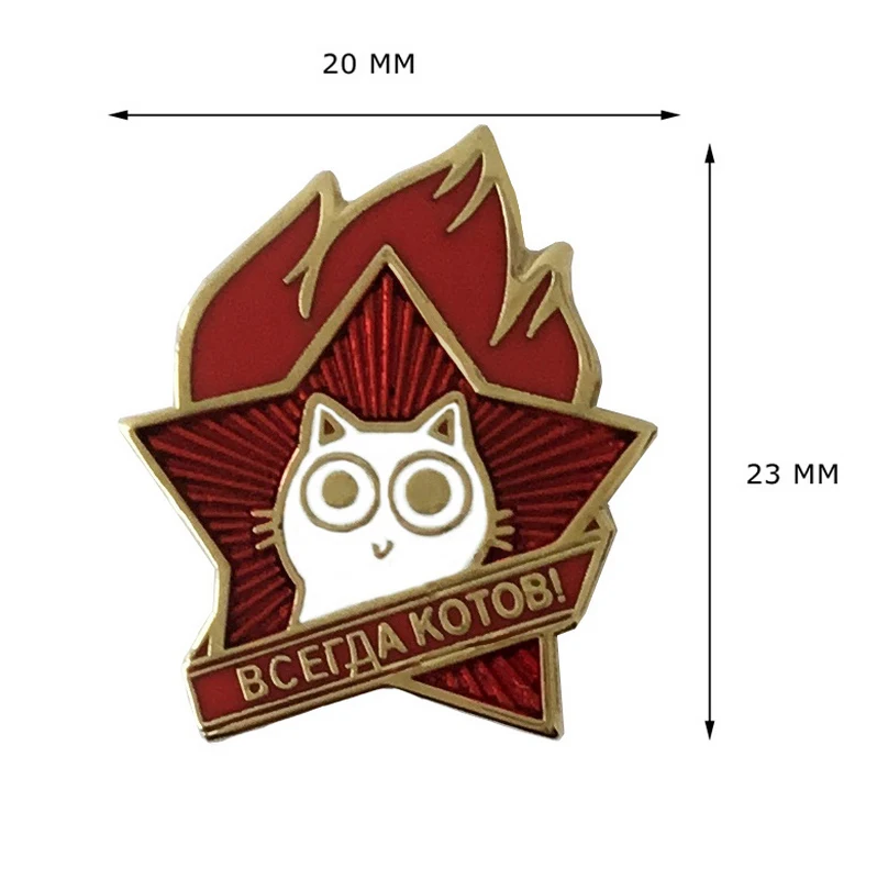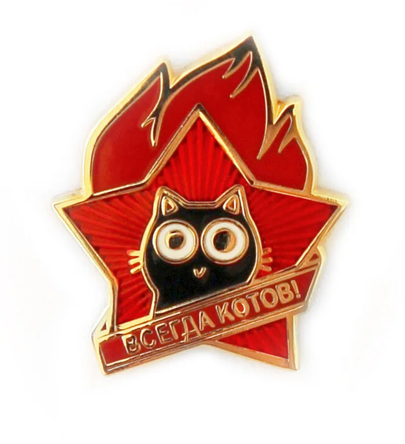 Значок "Всегда котов", кот с удивленной мордой, горячие эмали