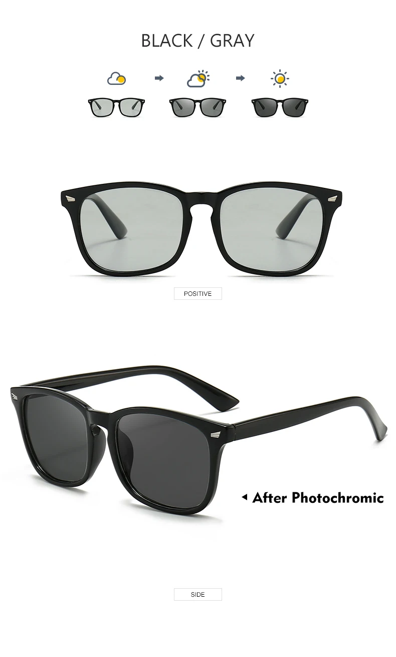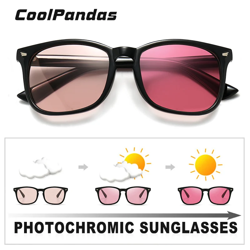 Солнечные очки CoolPandas с фотохромными линзами UV400 для мужчин и женщин, модные солнцезащитные аксессуары в винтажном стиле, с квадратными линзами, меняющими цвет, для путешествий