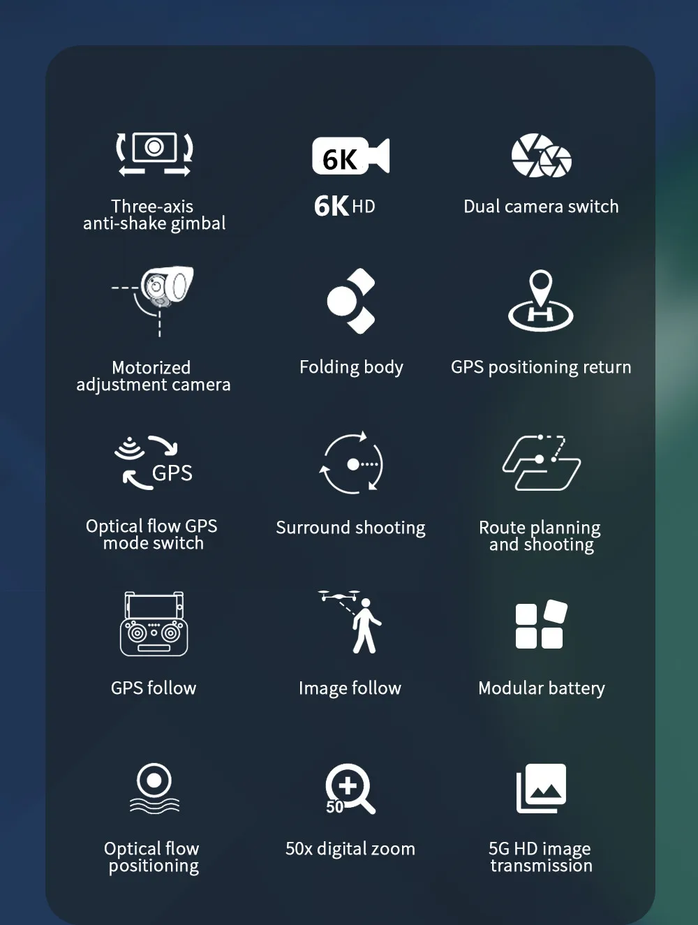 Дрон SG907 MAX, камера 6K на трёхосевом подвесе со стабилизацией, GPS, 5G, WiFi, FPV, мотор бесколлекторный, максимальное время полёта 28мин, дистанционное управление