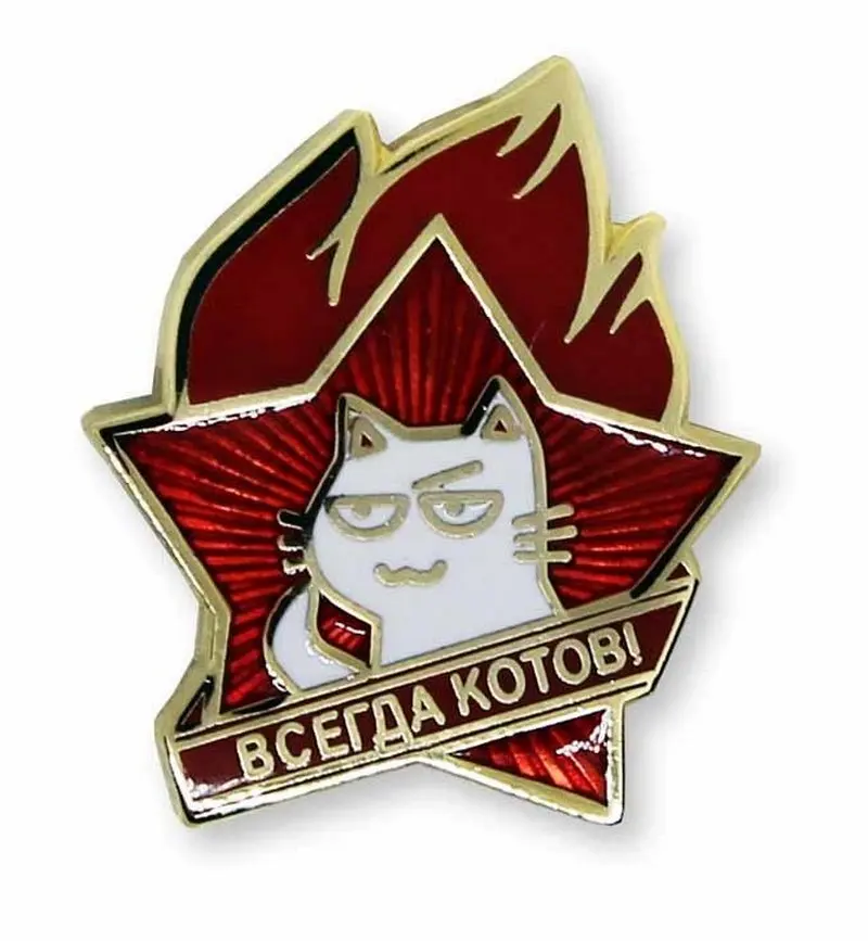 Значок "Всегда котов", кот с хитрой мордой, горячие эмали