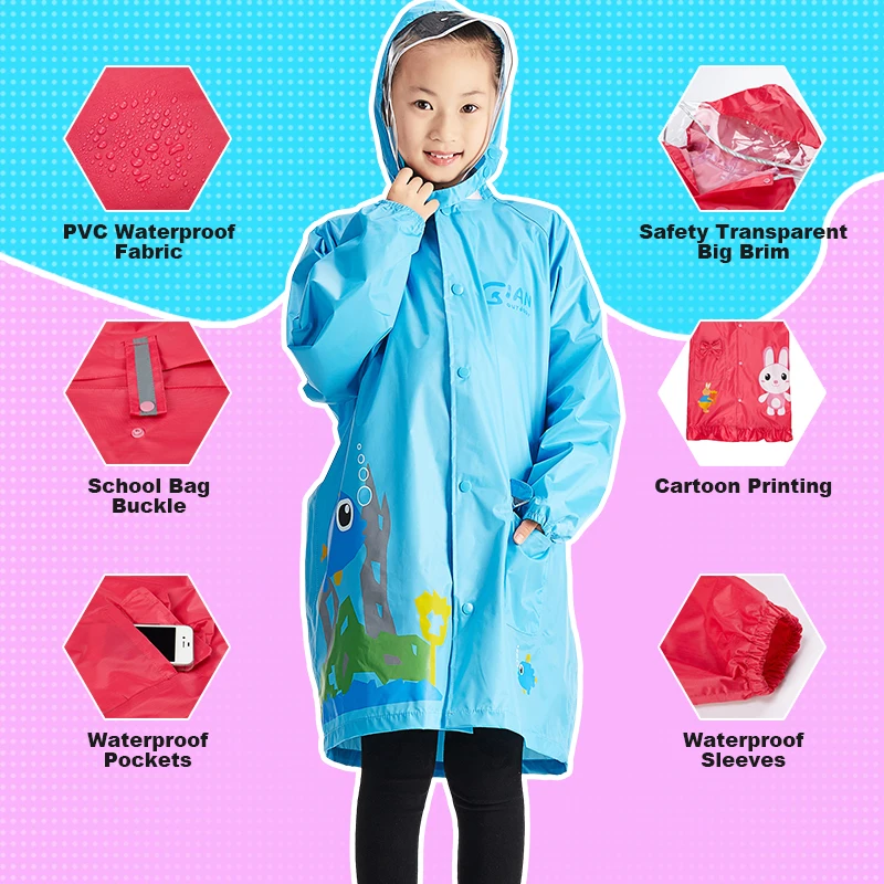Непромокаемый детский дождевик с капюшоном, милый мультяшный Дождевик-пончо для мальчиков и девочек, на резинке, водонепроницаемая куртка от дождя