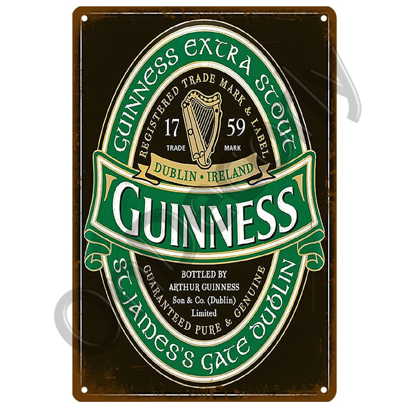 Металлический знак Guinness в стиле ретро, жестяной знак, виски, Бе...