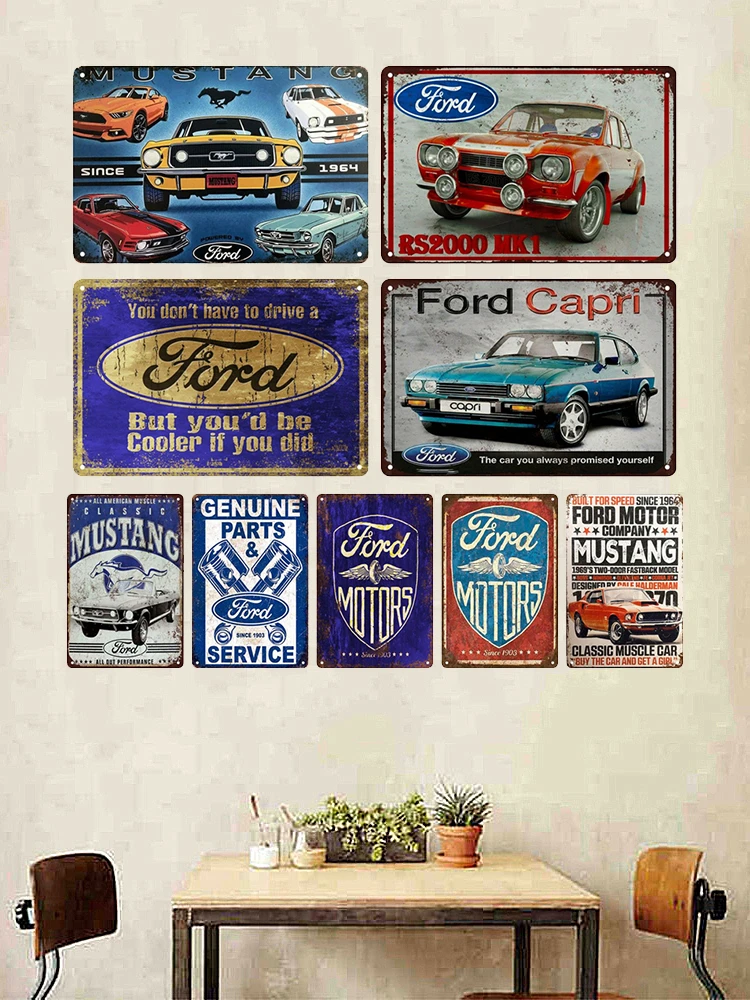 Ретро Мустанг Форд автомобили Металл гаражный знак Оловянная табличка Декор постер тарелки человек пещера потертый шик