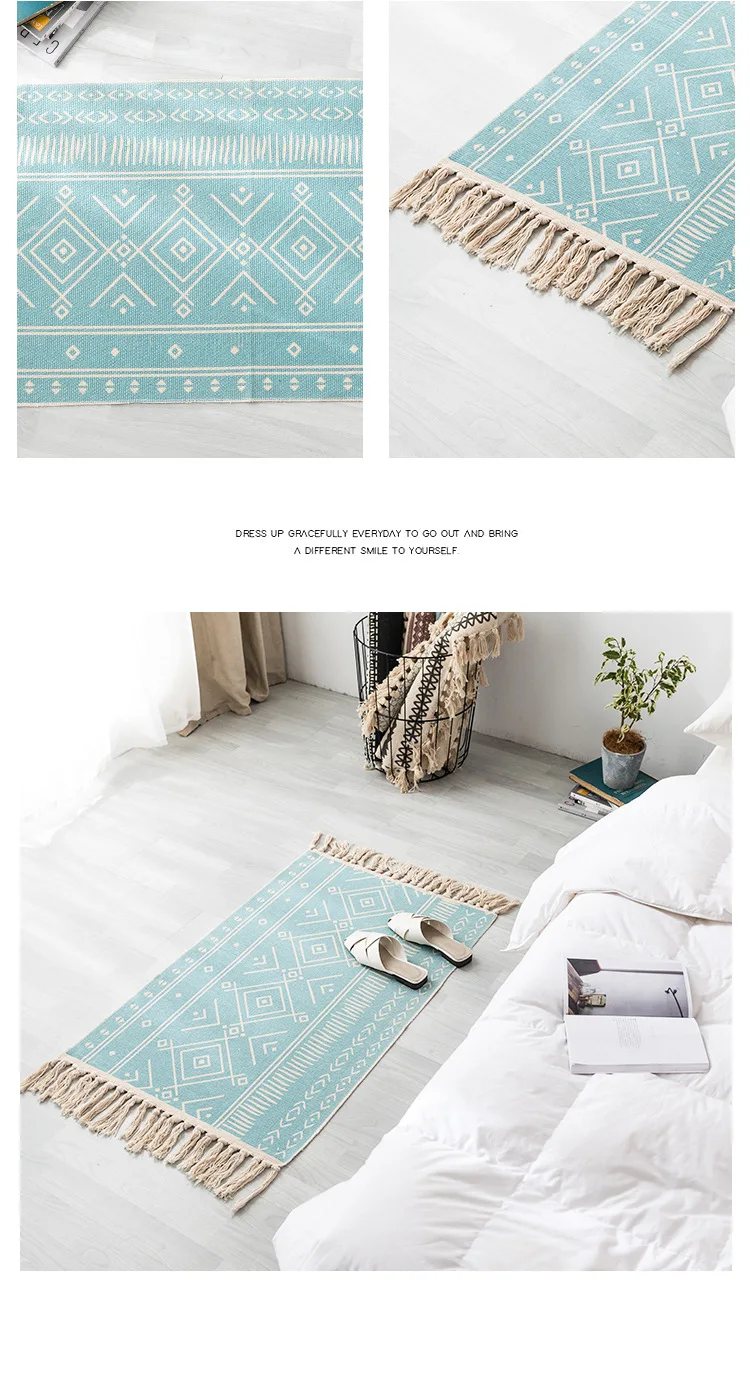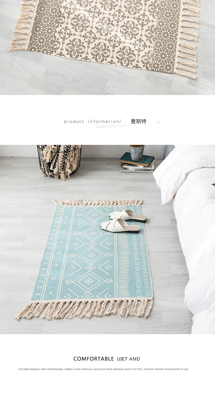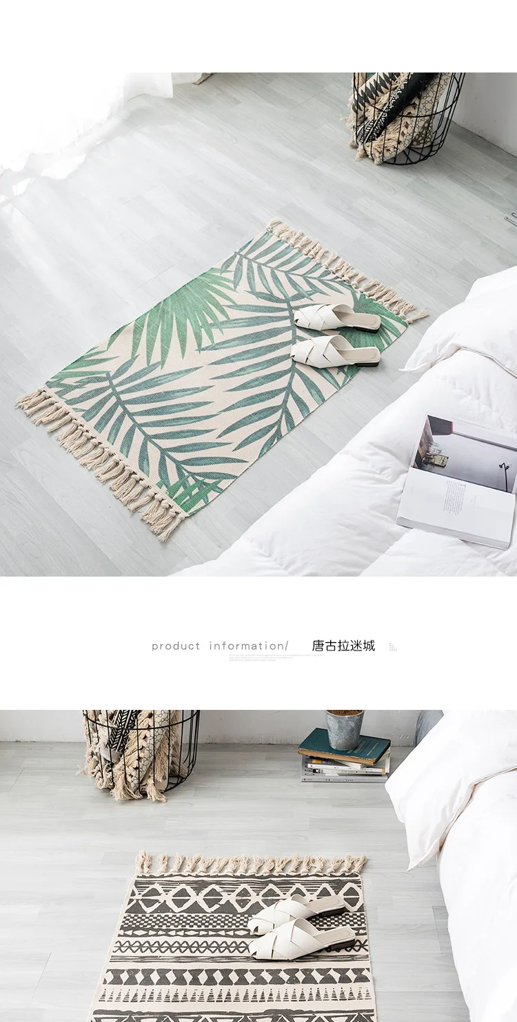 Богемный простой хлопковый льняной ковер в Ретро этническом стиле с кисточками, напольный коврик для спальни, гостиной, прикроватный маленький Молитвенный Ковер 60х90см