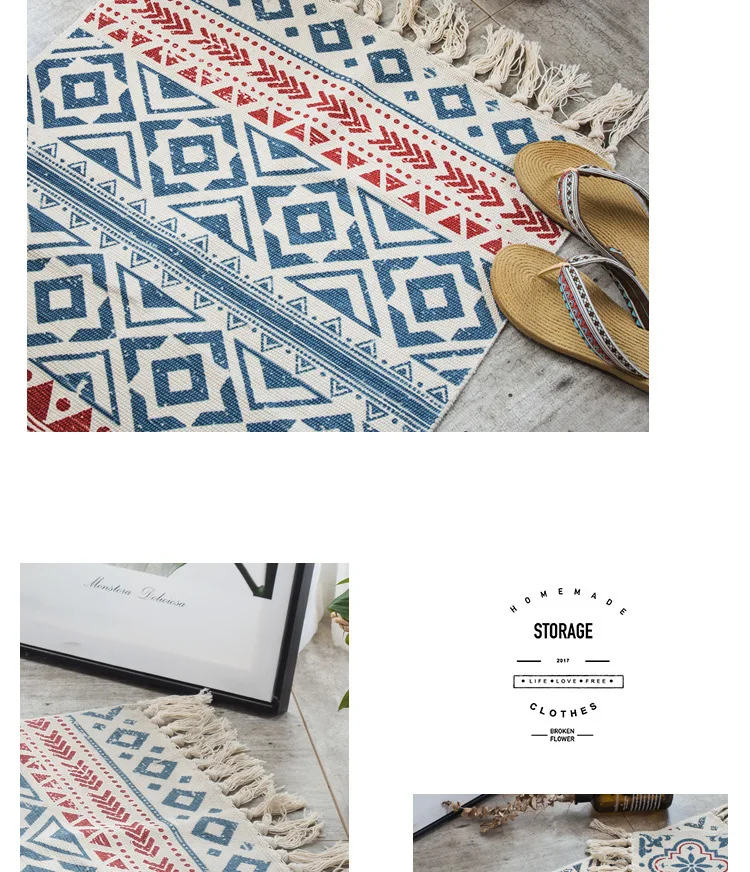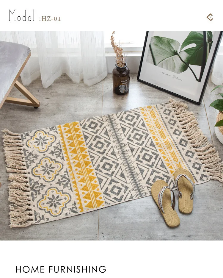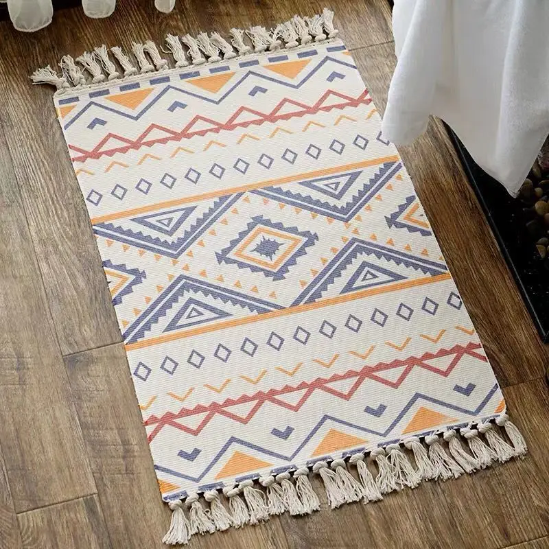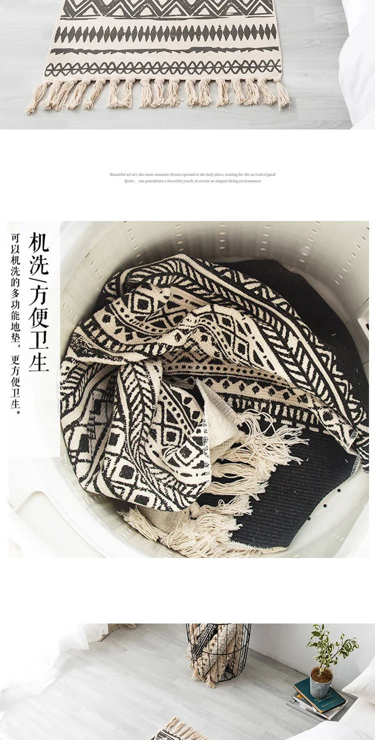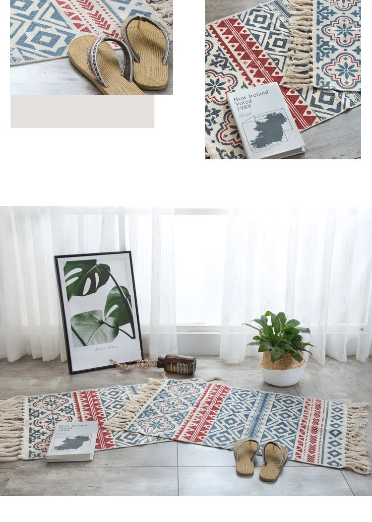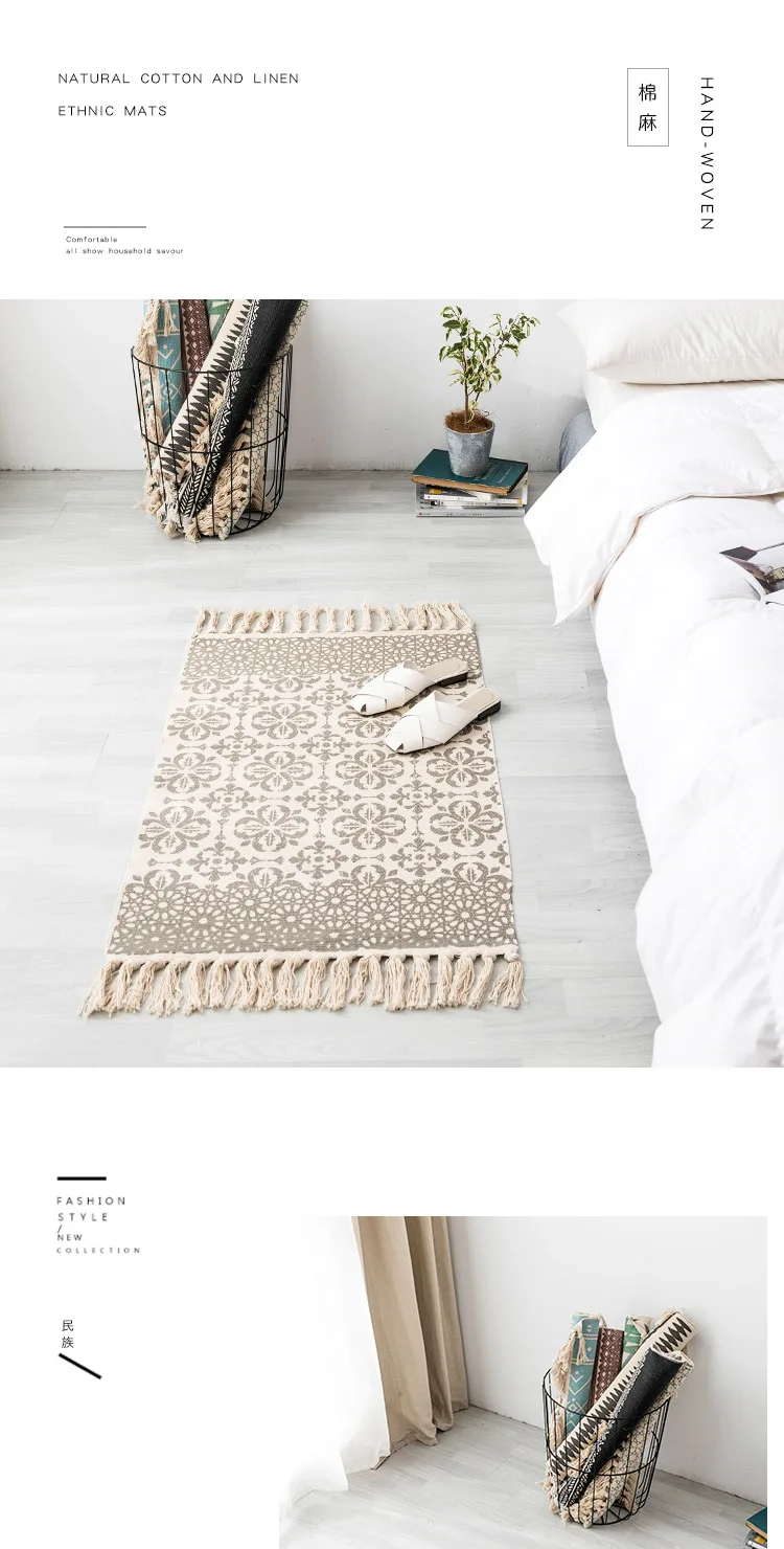 Простой хлопковый льняной ретро-ковер в богемном стиле с кисточками в этническом стиле, напольный коврик для спальни, гостиной, прикроватный маленький молитвенный коврик 60x90 см