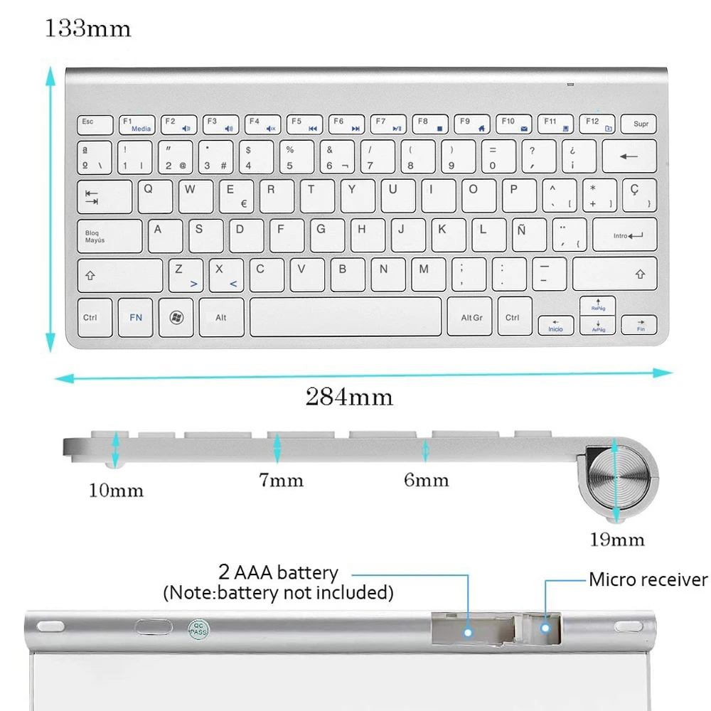 Ультратонкая беспроводная клавиатура с испанской раскладкой, 2,4 ГГц, 78 клавиш