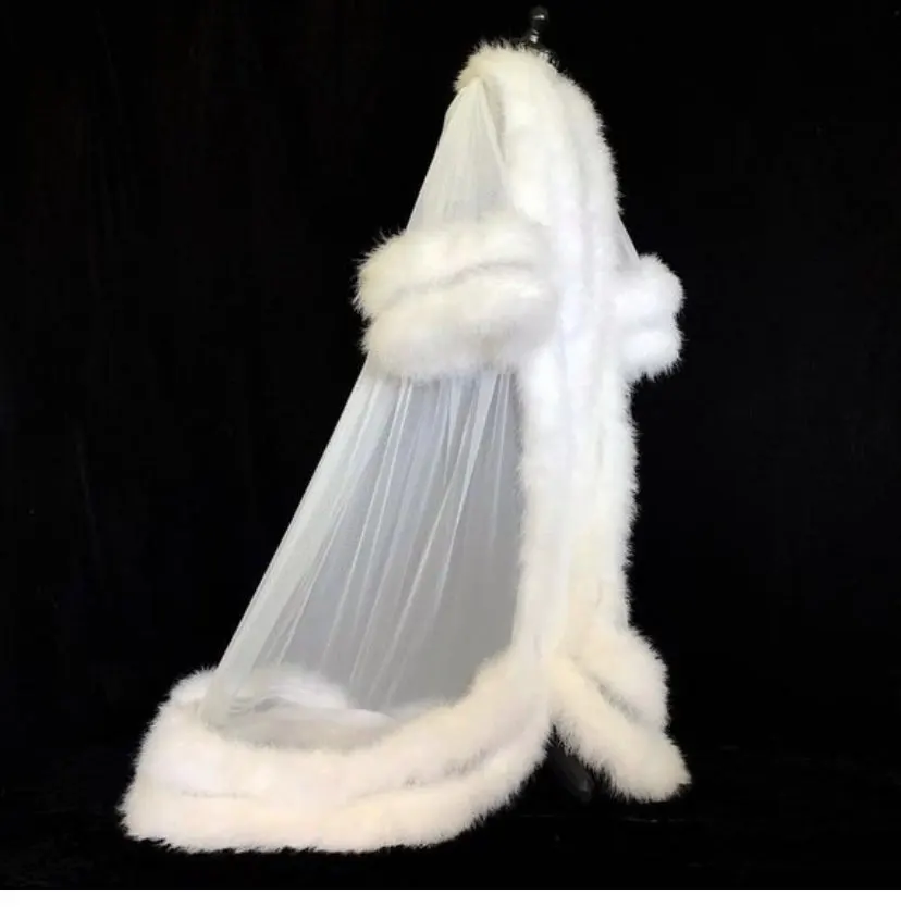 Халат женский с страусиными перьями, длинный тюлевый банный халат, ...