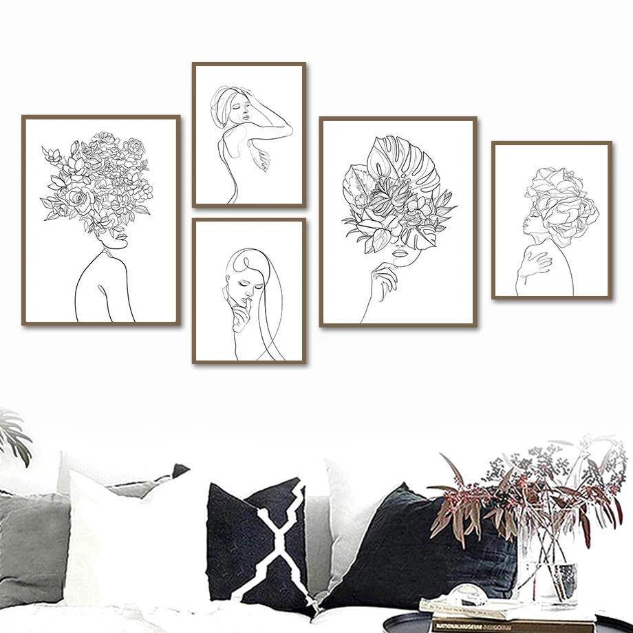 Абстрактная линия лица женщины минималистская настенная Картина на ...