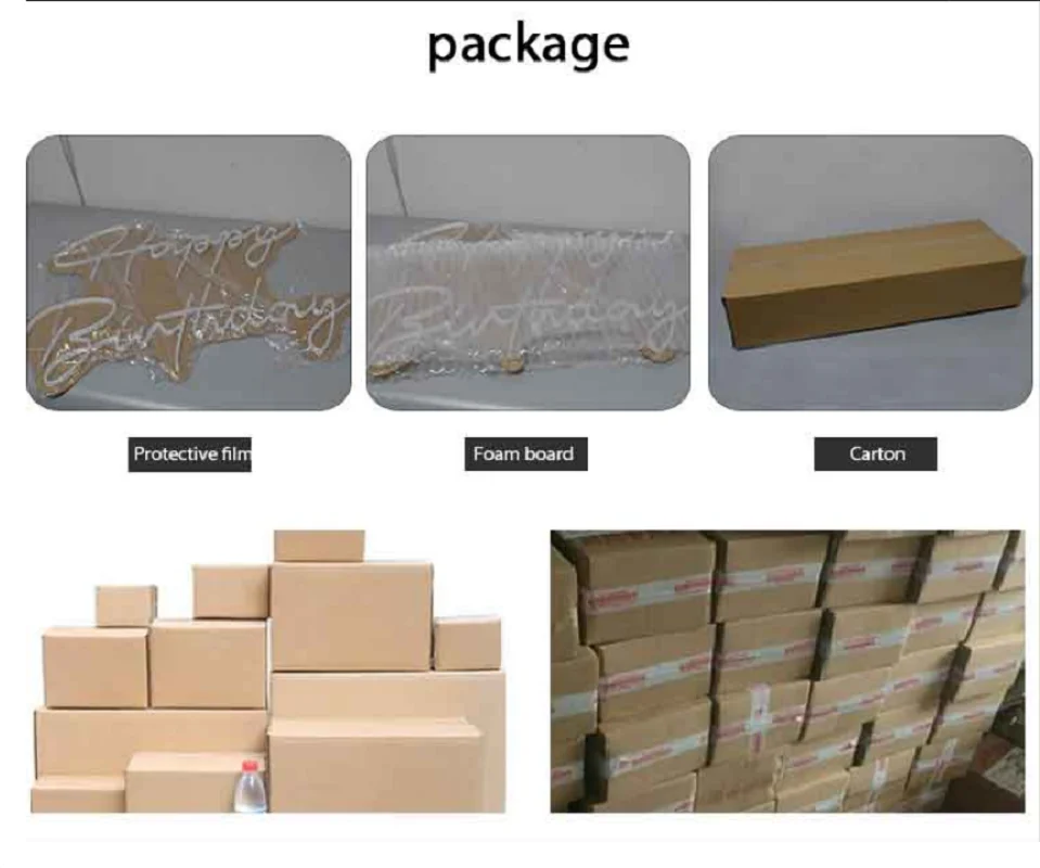 8. Форма задней панели: доска срезана для формирования формы9. Основные части: акриловая пластина, неоновый flex, источник питания, аксессуары для установки
