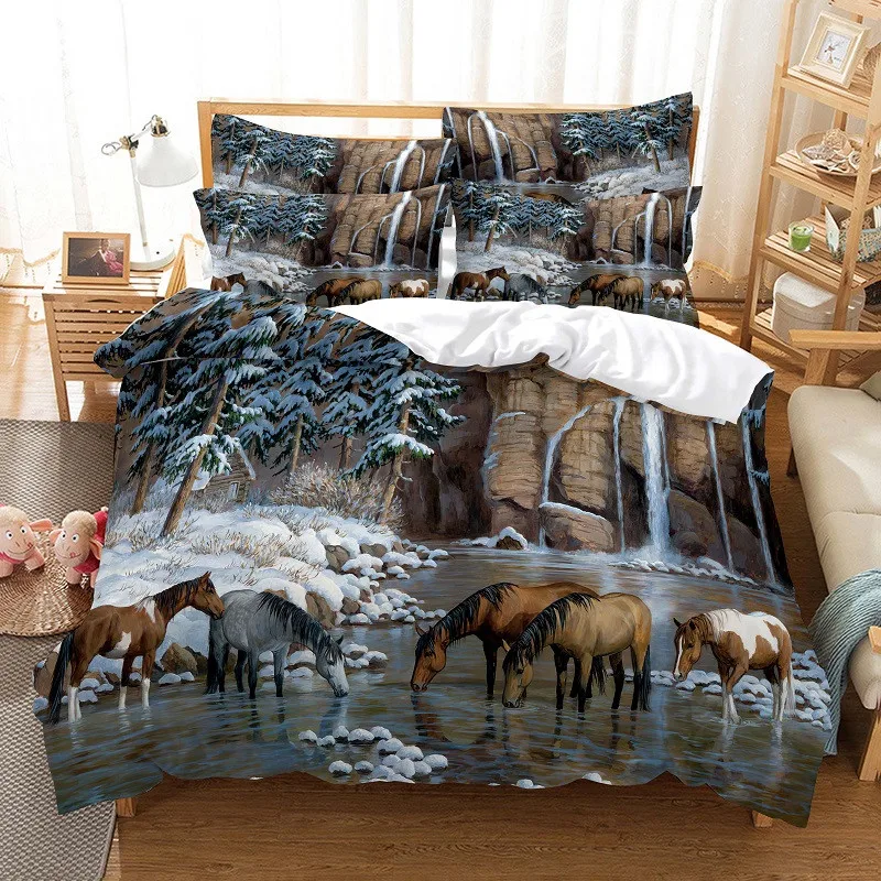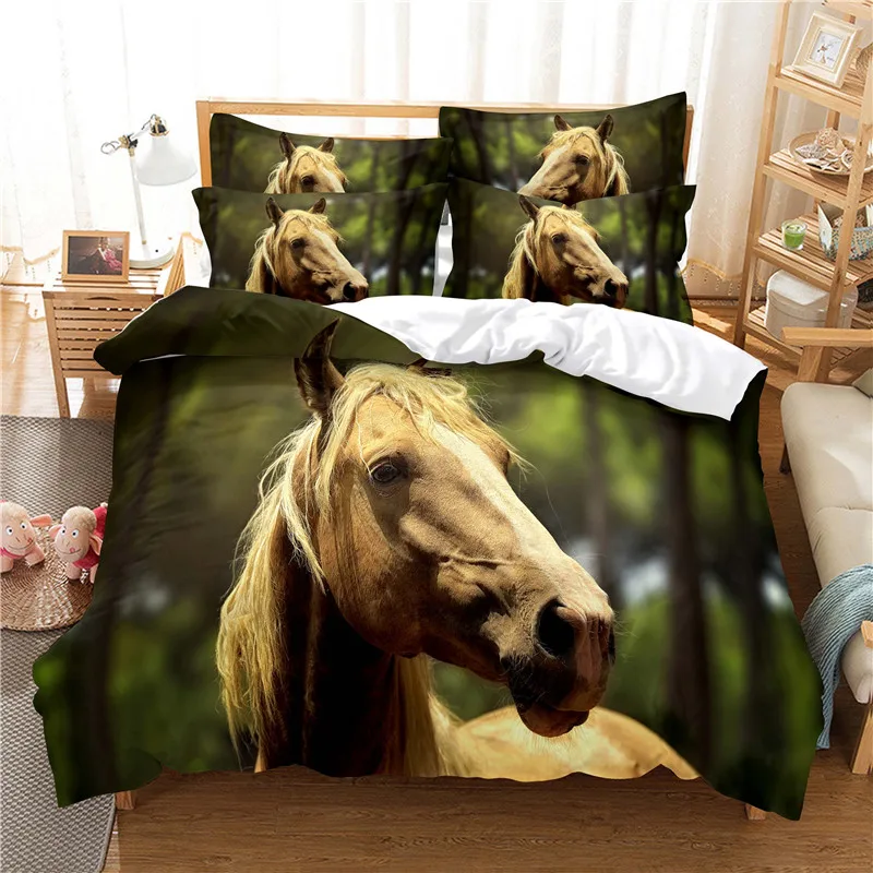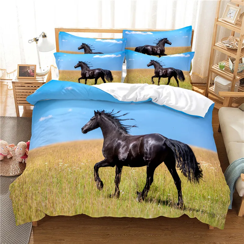 Голубое небо пастбищ вороной конь постельное белье 3d цифровая печать постельное белье модный дизайн одеяло, покрывало, постельные принадлежности наборы Комплект постельного белья