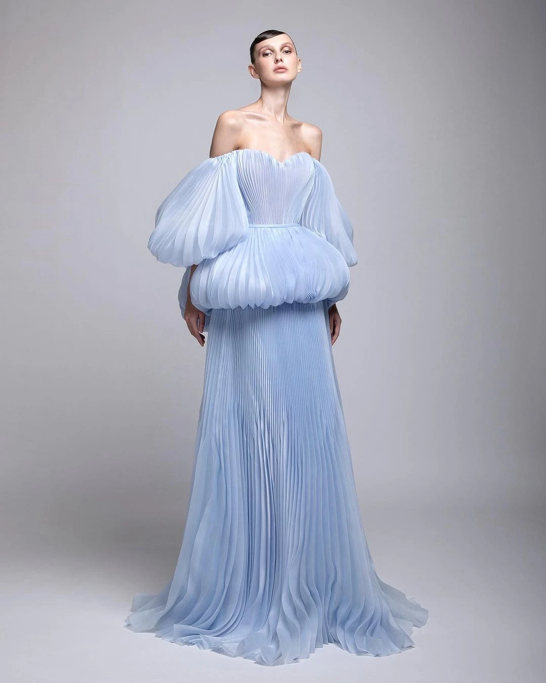 Элегантное платье размера плюс небесно-голубого цвета, платья для выпускного вечера пузырь рукава без Бретелек Пол Длина вечерние платья размера плюс, новый дизайн