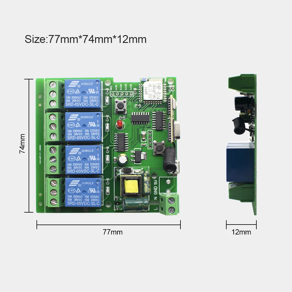 4CH 85V-250V WIFI + RF умный модуль переключателя