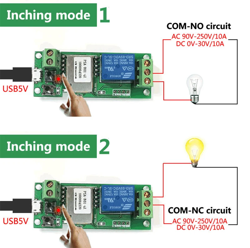 Этот беспроводной коммутатор является недорогим и доступным устройством, которое позволяет пользователям удаленно включать/выключать подключенное устройство различных типов и брендов через приложение EWeLink из любой точки мира в любое время, И установив графики для ваших приборов, вы можете поддерживать беззаботную жизнь. Он поддерживает режим инчинга/самоблокировки. В режиме самоблокировки клиенты могут удаленно включать/выключать подключенные устройства немедленно. В режиме инчинга клиенты могут выбрать два способа подключения: включить 1s, а затем автоматическое выключение, выключить 1s, а затем автоматическое включение.