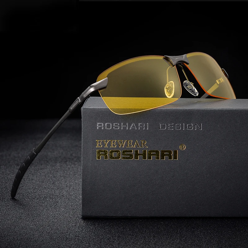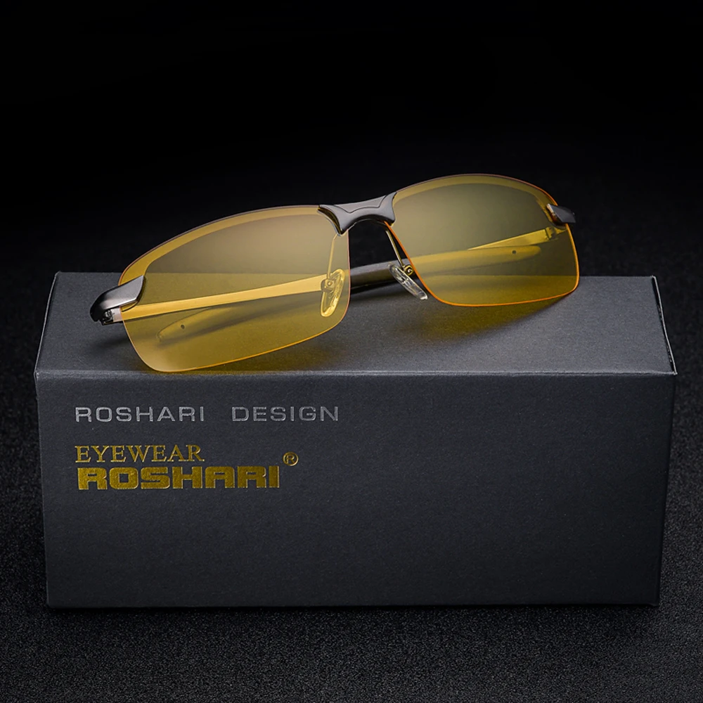 Очки ночного вождения RoShari дневные и ночные антибликовые солнцезащитные очки поляризованные желтые линзы со стильным чехлом A10