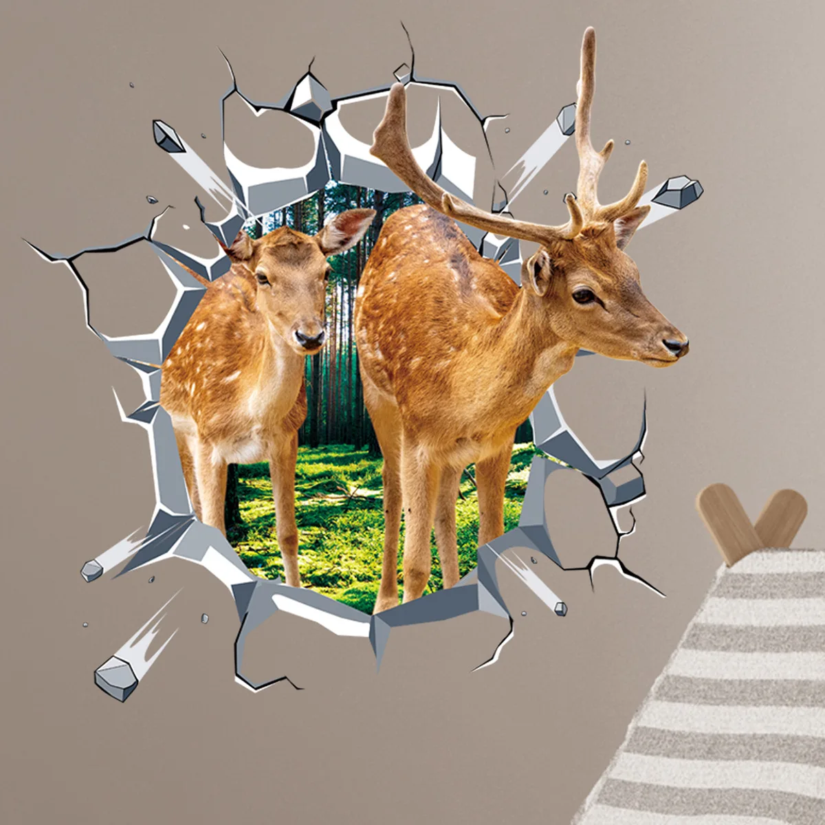 3D Наклейка на стену с изображением животных, милая Акула, дельфин, пятнистый олень, домашний декор для ванной, гостиной, наклейка, виниловая декоративная стена