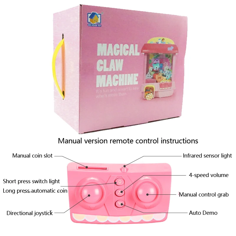 Особенности:Может быть собран и разобран сам по себе, портативный не занимает местаВозьмите кукольный рокер, чтобы вынуть, пульт дистанционного управления, чтобы поймать куклуВстроенная мощная ручка, легко управлять несколькими режимами электропитания, usb-подключение, питание от аккумулятораМногофункциональная консоль эффективно тренирует координацию рук и глаз детейКогда вы захватываете куклу, вы будете издавать красивые огни и болеть музыку, которая более удовлетворительна.Поставьте различные изысканные плюшевые куклы, которые могут быть использованы в качестве кукольных призов и могут быть вывезены отдельноСпецификация:Название продукта: DIY кукольная машинаСтиль: бананВес нетто: 1,6 кгРазмер изделия: 27,5х23,5х34,5смУпаковка: ПП упаковкаМатериал: АБС-пластик материал для защиты окружающей средыИсточник питания: usb-кабель для подключения или аккумулятор 6 * AA (не входит в комплект)Пульт дистанционного управления: 2 * AAA батареи (не входят в комплект)Посылка включает в себя:Колонка x4Плата x4Топ x1Низ x1Пульт дистанционного управления x1Кукла x5Игровая валюта x12USB кабель x1Руководство x1