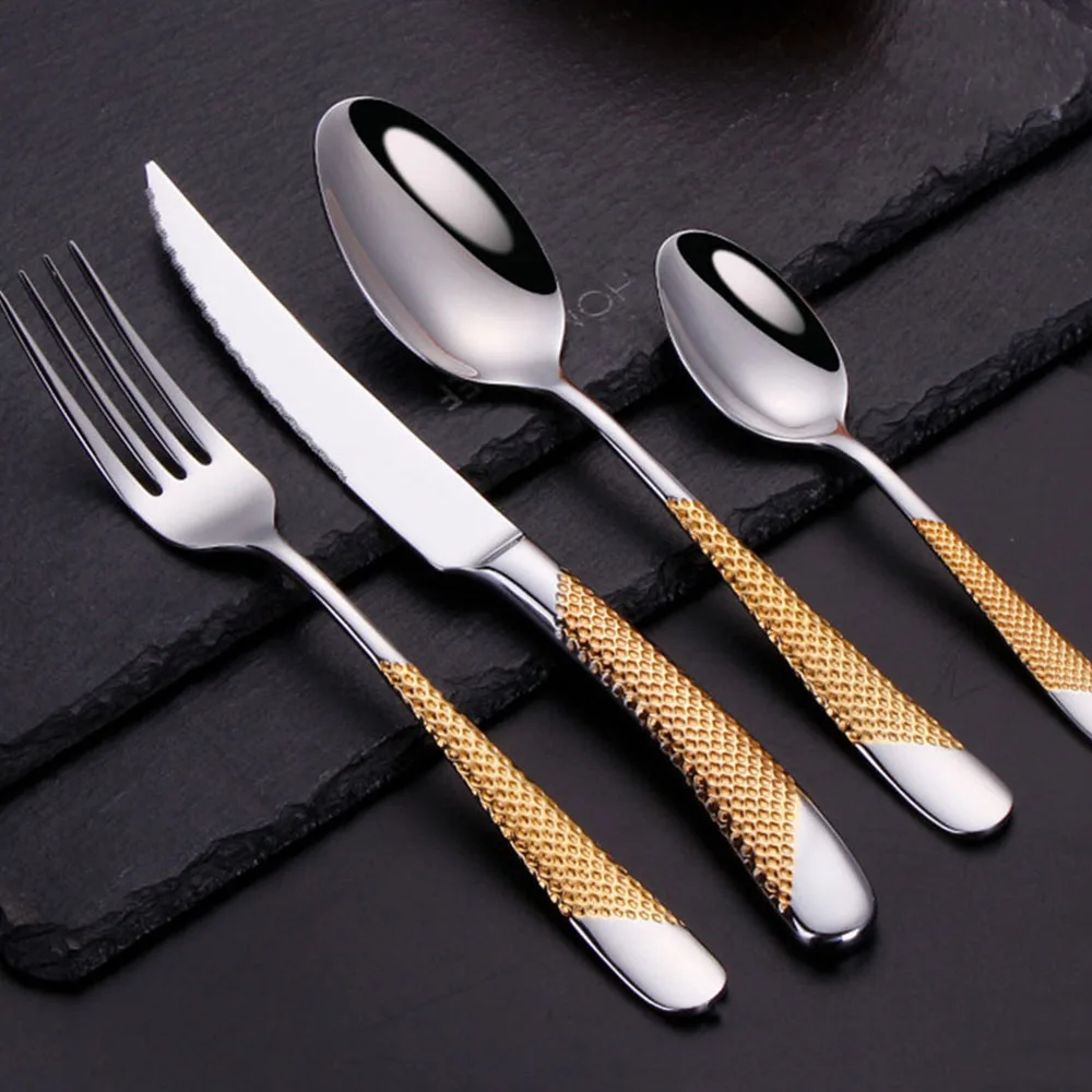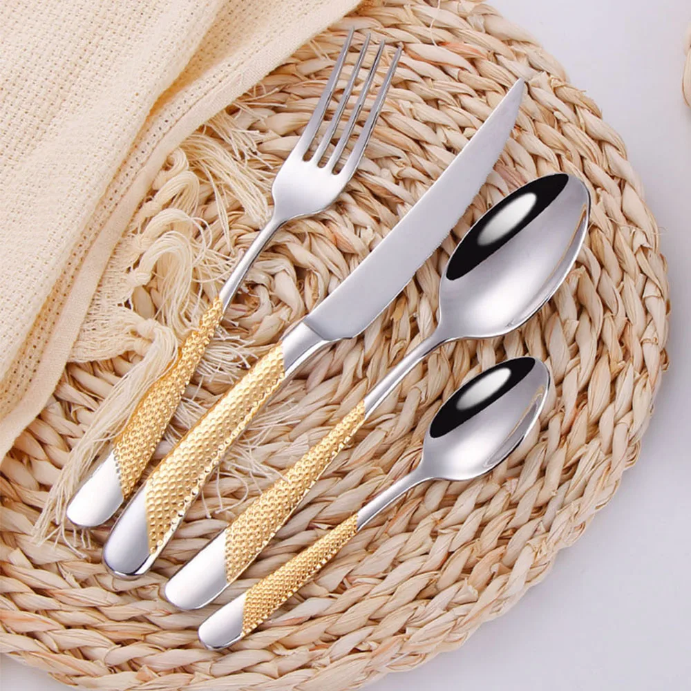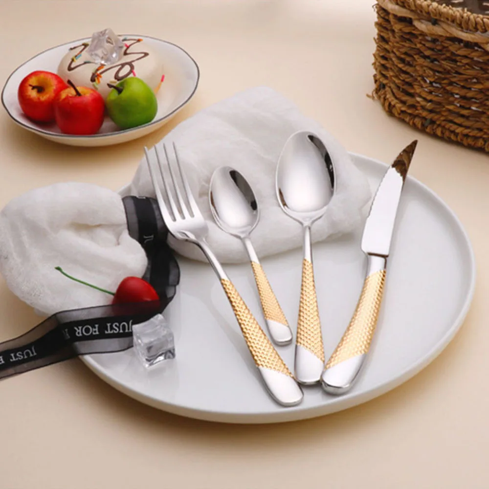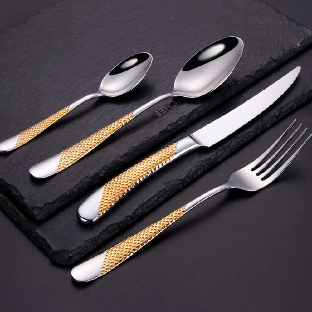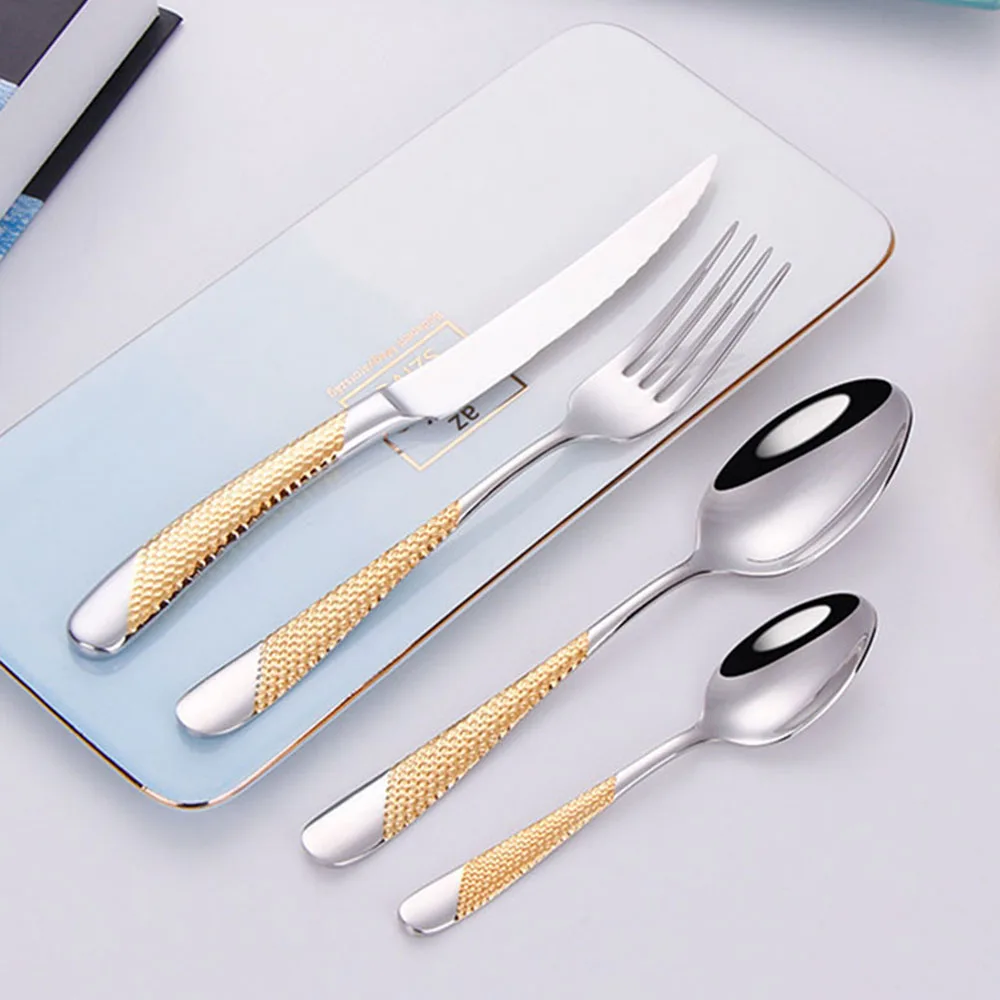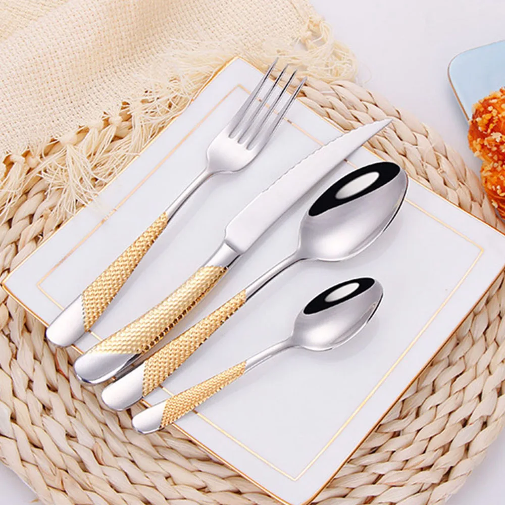 Набор столовых приборов в западном стиле для дома и ресторана из нержавеющей стали 304, полный набор ножей и вилок для чая S, Золотая столовая посуда, чайная ложка, столовая посуда
