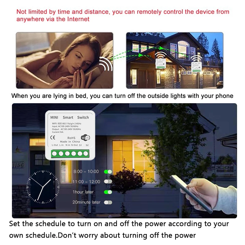Беспроводной Выключатель Mimi, Wi-Fi, 16 А, двусторонний таймер управления, автоматизация умного дома, совместима с Tuya Alexa Google Home