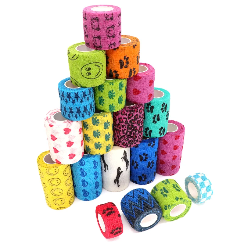 Спортивная спортивная лента с принтом, медицинская терапевтическая эластичная повязка, Кемпинговый протектор для пальцевых суставов, колена, ладони, запястья, питомца