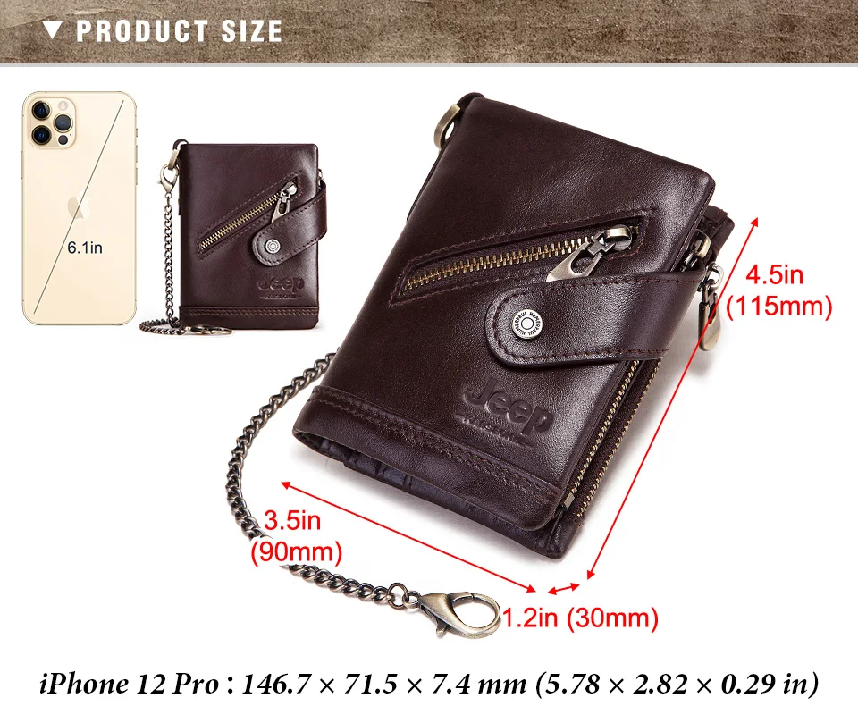 Мужской кошелек из 100% натуральной воловьей кожи, кошелек для мелочи, мини-держатель для карт с Rfid, роскошное портмоне с цепочкой, мужской кошелек с карманами