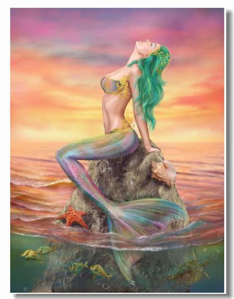 Прямая поставка, 2021 г., вышивка Русалка на закате, современные идеи для вышивки крестом из 100% хлопка, мулине и бесплатная доставка для домашнего декора