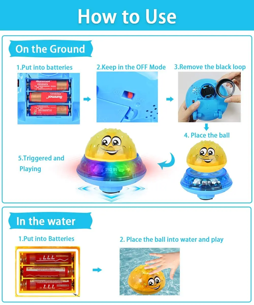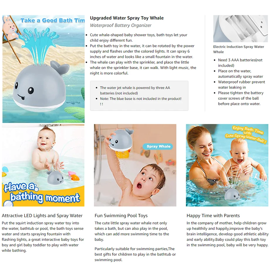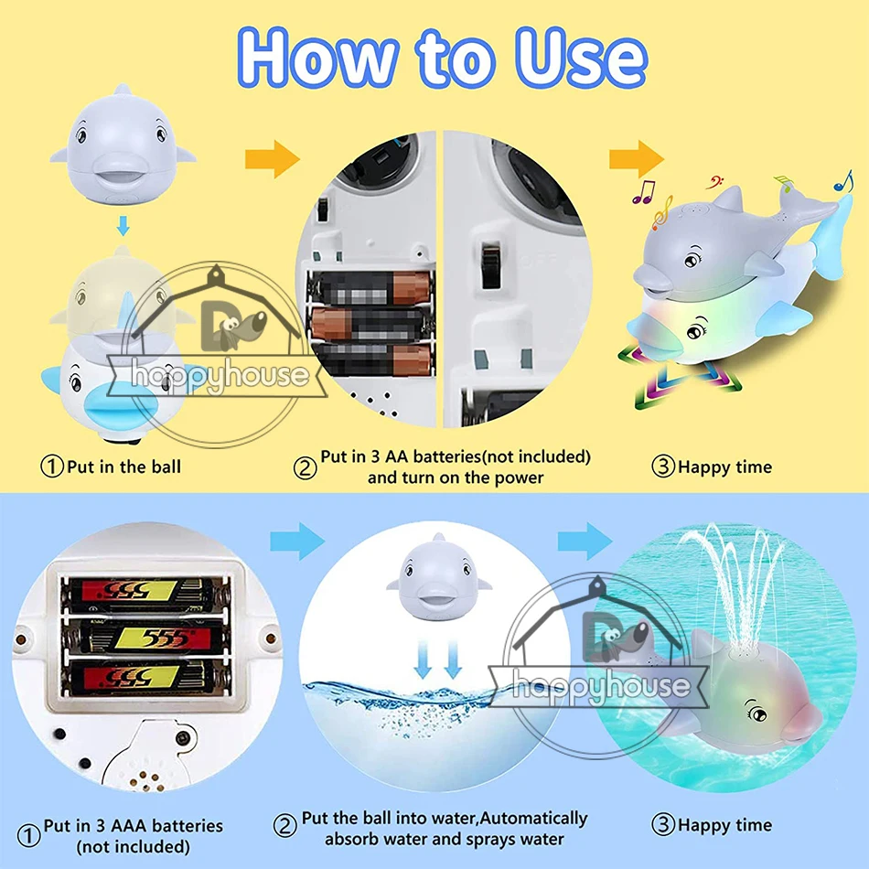 【Легко использовать-игрушки для детской ванны питаются от трех батареек AAA (не входят в комплект). Водяная игрушка автоматически определяет, просто установите батарейки и поместите их на воду, она автоматически поглощает воду снизу и распыляет соответствующую высоту водной колонны. Когда вы покидаете воду, все эффекты немедленно прекратятся. Не требуется ручная работа