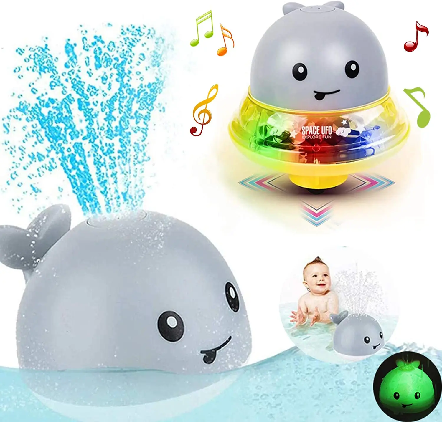 【Индукционный распылитель воды для ванны-милая игрушка для ванны для Кита может автоматически распылять воду и мигать красочными огнями, когда вы помещаете Игрушки для ванны в воду. Игрушки для ванны, вращающиеся и плавающие на воде, распылительная вода, принося бесконечные Развлечения для детской ванны, ваш ребенок будет наслаждаться каждым чаем.