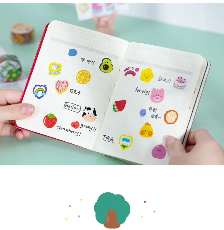 100 шт.упак. Kawaii фрукты Животные лицо точка наклейки из бумаги в...