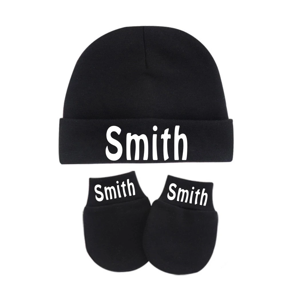 Индивидуальные шапки и варежки для новорожденных, персонализированные розовые шапки и варежки, шапка для новорожденных и детские перчатки с защитой от царапин, варежки