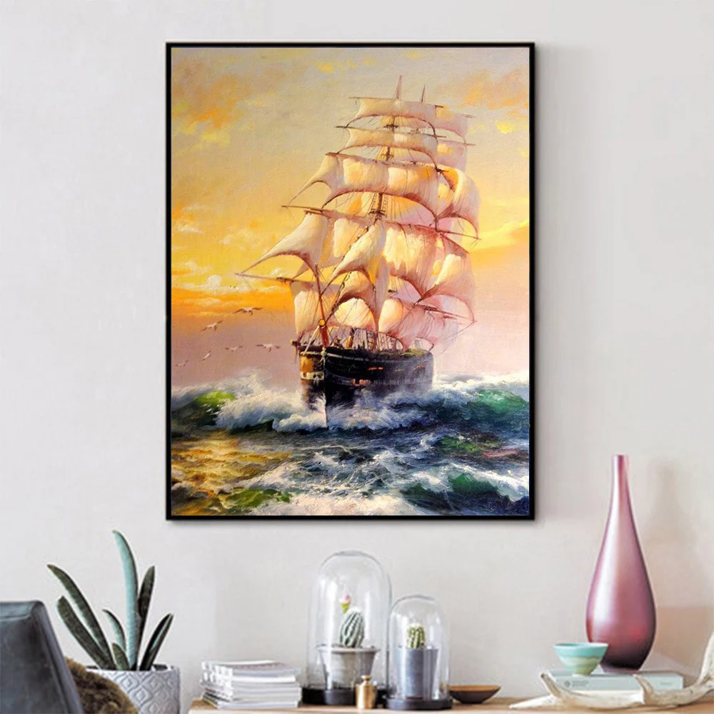 Алмазная живопись HUACAN, парусник, комплекты, украшение для дома вышивка, мозаика, морской пейзаж, вышивка крестиком, алмазная живопись