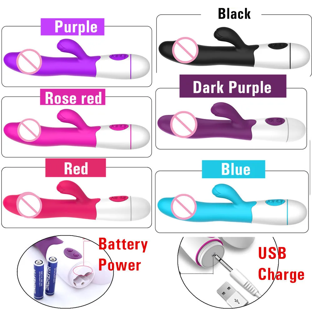 Особенность: Тип изделия: вибратор-фаллоимитатор кролика точки G Цвет: розово-красный/черный/фиолетовый/темно-фиолетовый/красный Функция: 30 режимов вибрации, одновременная Стимуляция клитора и влагалища Вес нетто: 150 г Длина изделия: L195 * d33мм Водонепроницаемость: Да Уровень шума: <50 дБ Упаковка без каких-либо картинок и слов о сексе. Этот продукт имеет тип батареи и тип USB Два способа питания на выбор: 1. Магнитный USB-перезаряжаемый. (с usb-кабелем) 2. Питание от аккумулятора: 2 батарейки типа ААА (батарейки не входят в комплект)