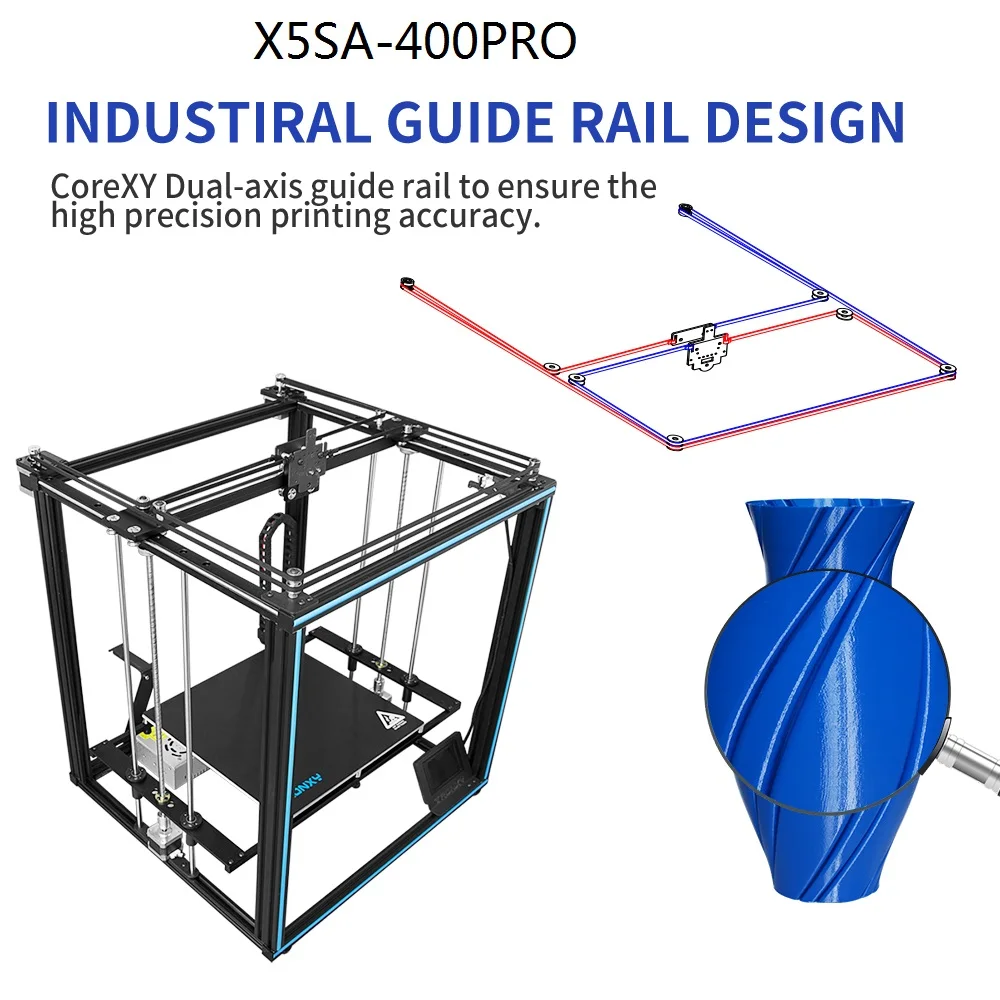 【Автоматическое выравнивание и заполненная материнская плата box】 X5SA-400 Pro использует уникальную автоматическую систему выравнивания, которая поможет вам определить более точное положение. Платформа легко регулируется, так что у вас нет проблем с выравниванием. Благодаря металлической материнской плате, которая экономит время установки, вы чувствуете себя в безопасности и можете управлять машиной без каких-либо проблем. Кроме того, эта конструкция помогает избежать ошибок при установке.[Новый дизайн контактной платы] Попрощайтесь со сложными и хаотичными линиями питания.【Cube полностью металлический корпус квадратная структура делает принтер очень твердым и металлический материал усиливает стабильность, что делает процесс печати более стабильным и ровным.
