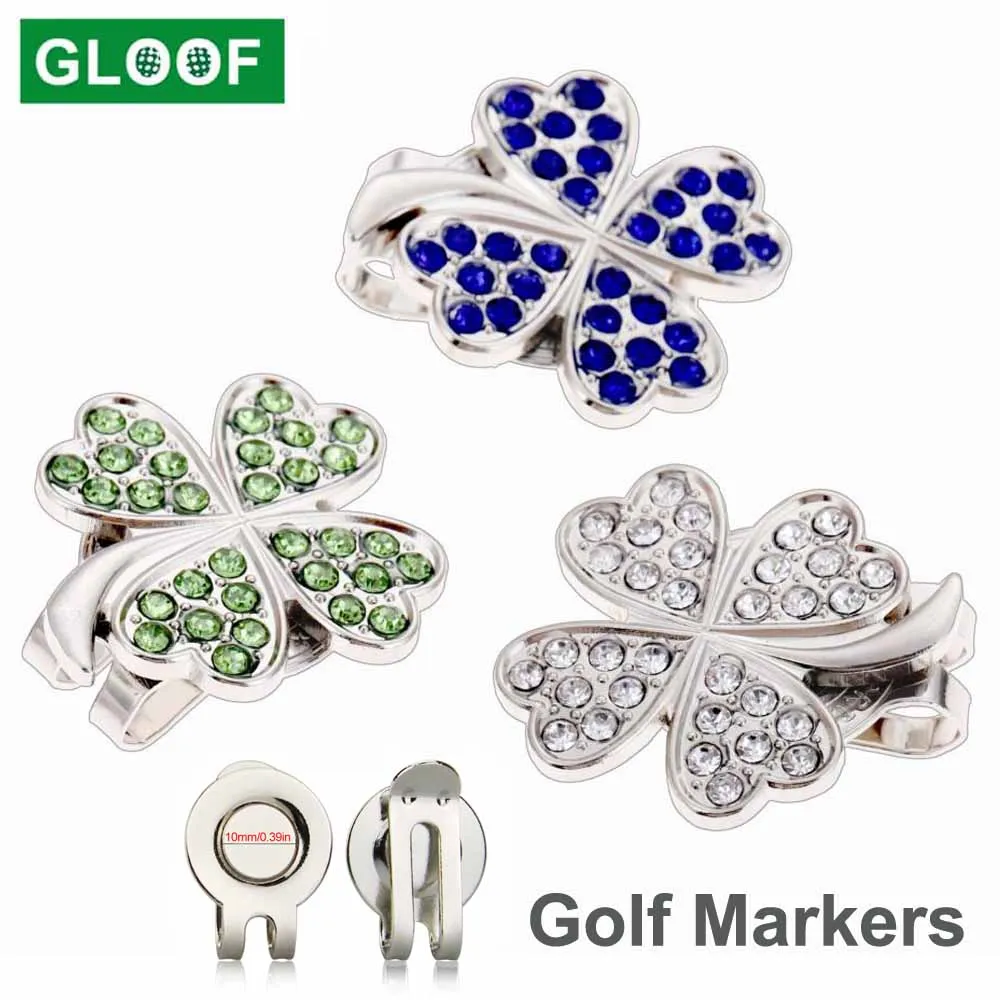 Маркер для мяча для гольфа с бриллиантом, кристаллом, четырьмя лист...