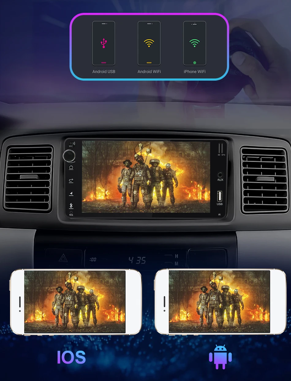 Поддержка зеркального соединения для Android и IOS устройств через USB-кабель или WIFI.