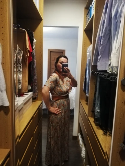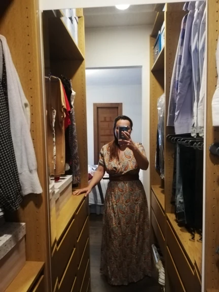 Красивое платье из приятной ткани и ярких цветов! Идеальный размер! Я буду часто носить это платье!