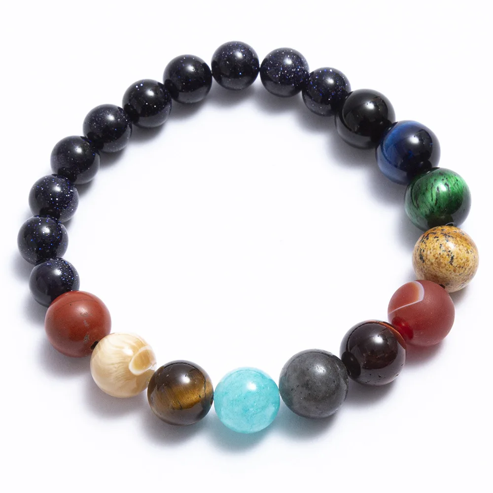 Браслет MIQIAO, из натурального камня, Вселенная, солнечная система, 8 планет, цвет Bt, для женщин, мужчин, подарок для влюбленных, модные украшения