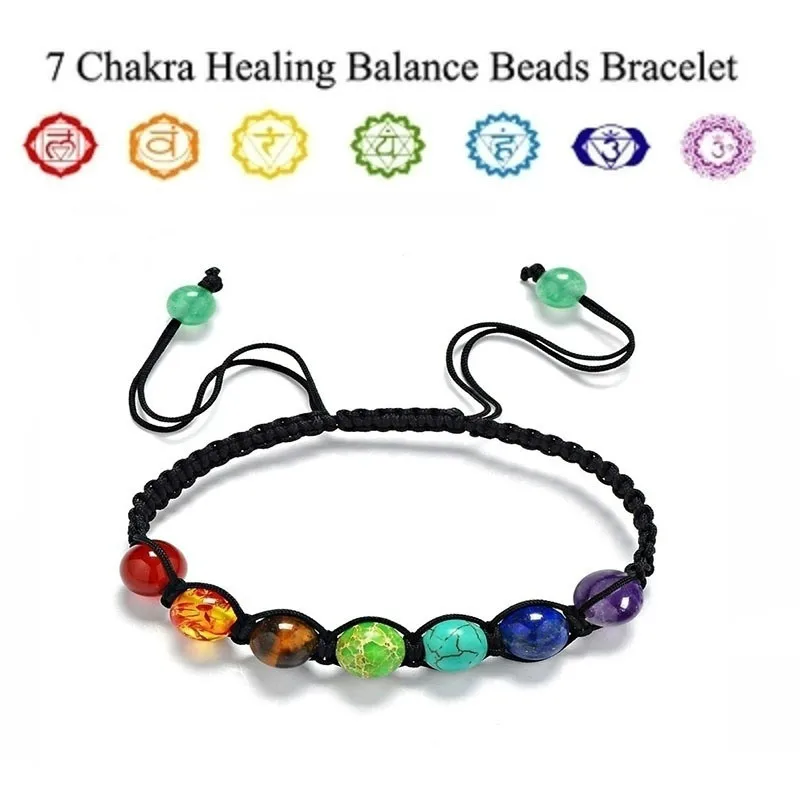 Браслеты с 7 чакрами, Бусины В Стиле Йоги из каменных бусин, эласти...