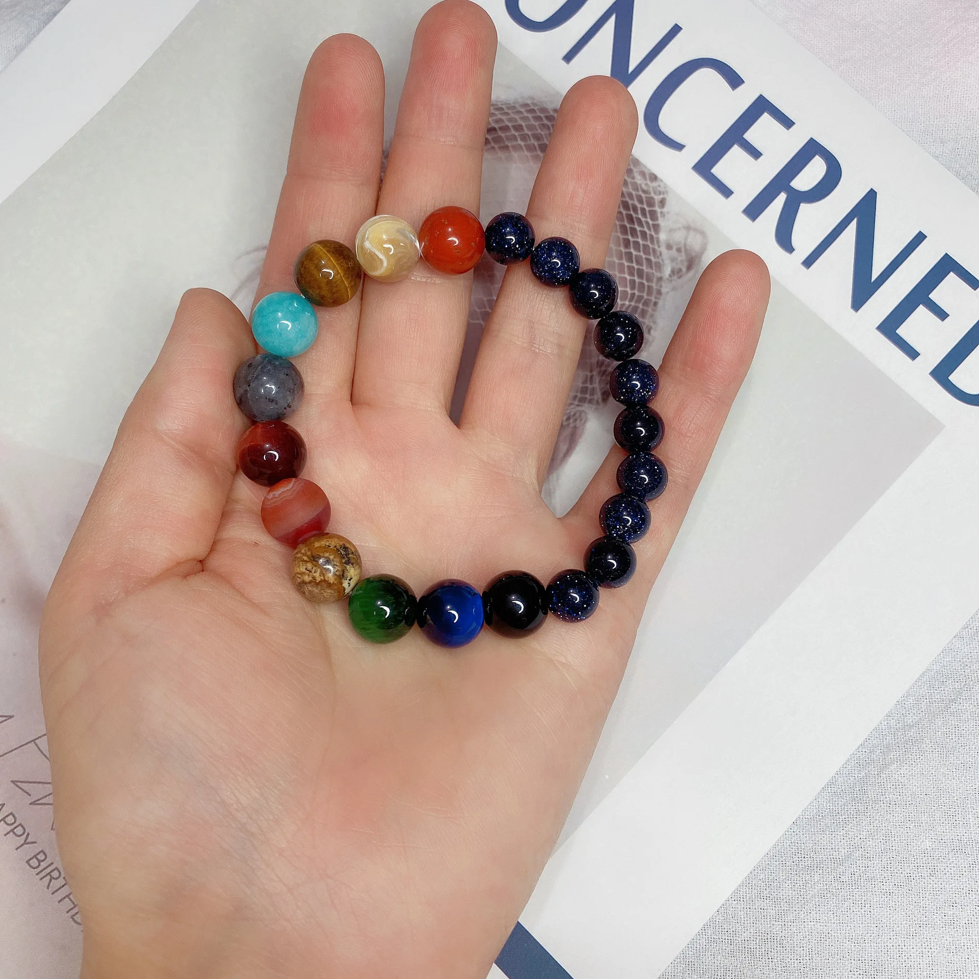 Браслет унисекс, с бусинами, в виде восьми планет, из натурального ...