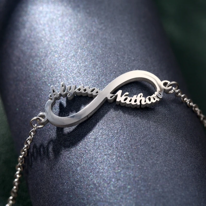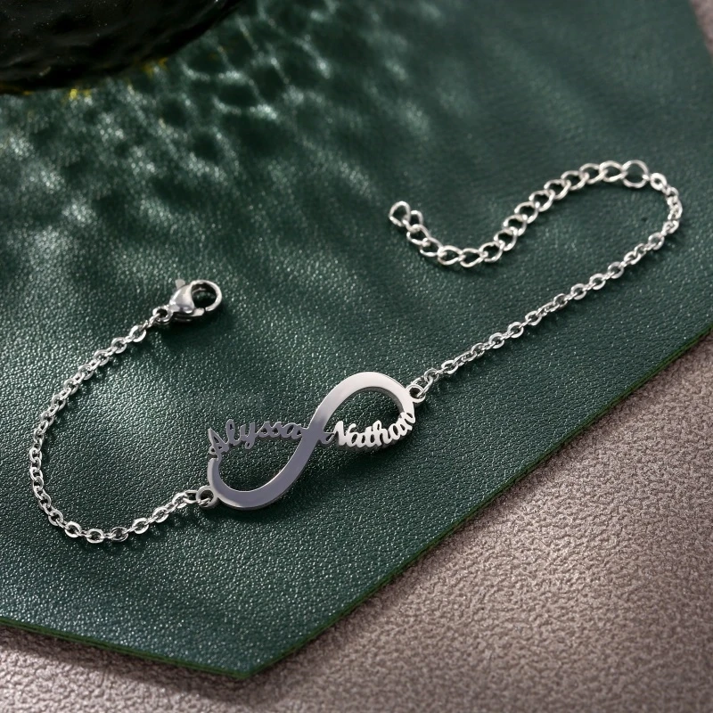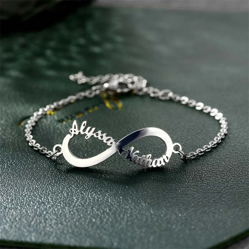 Именные браслеты бесконечность из нержавеющей стали под золото, для женщин, индивидуальные именные браслеты с буквами, именная табличка, ювелирные изделия