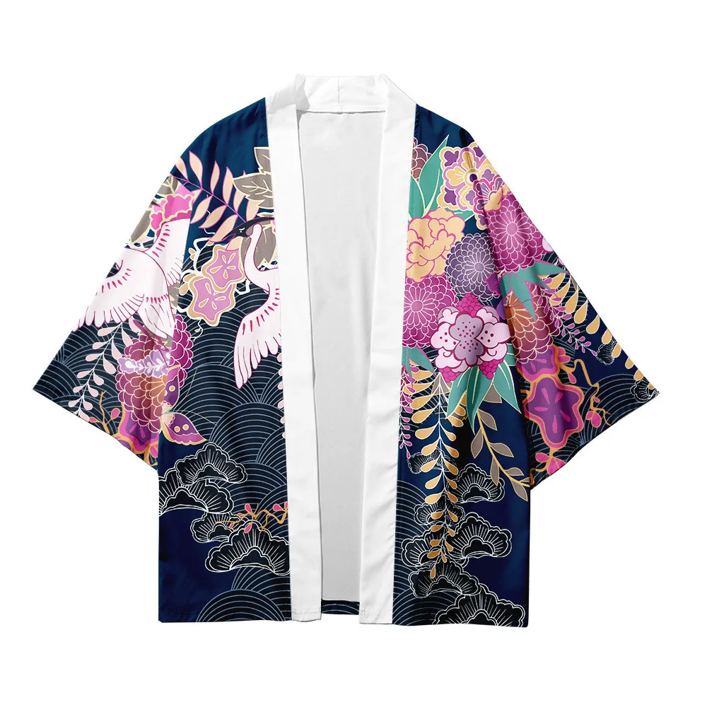 Кимоно с 3D-принтом журавлей, японское хаори юката, модная летняя Удобная Повседневная Уличная одежда унисекс для косплея, с коротким рукавом