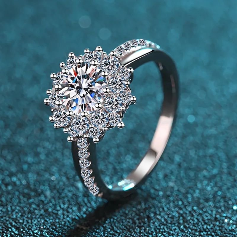 Женское кольцо из серебра 100% пробы с натуральным муассанитом AAA