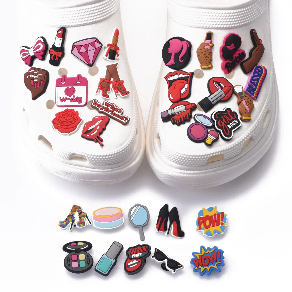 1 шт., новинка 2021, дизайнерские женские Кроксы, подвески для обуви, аксессуары для девушек, красивая помада, королева сабо, обувь, макияж, розовое украшение