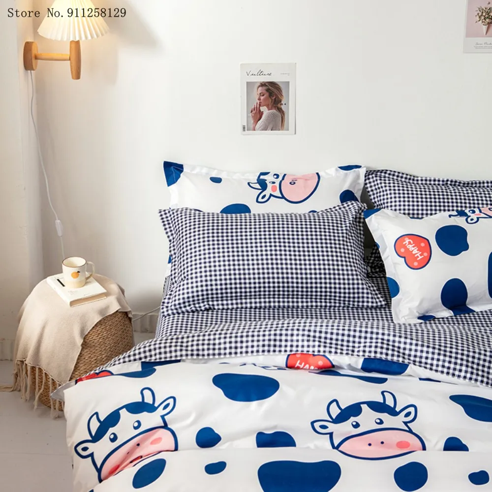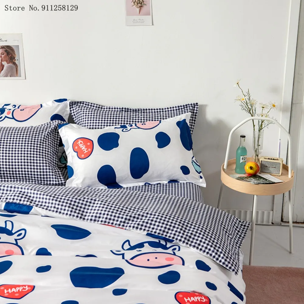 Комплект постельного белья с изображением коровы, голубого цвета, милый пододеяльник с изображением коровы, наволочка, простыня, домашний мультяшный хлопковый комплект постельного белья, 34 шт.