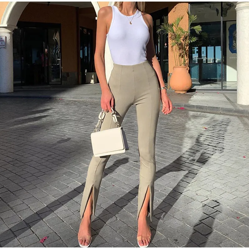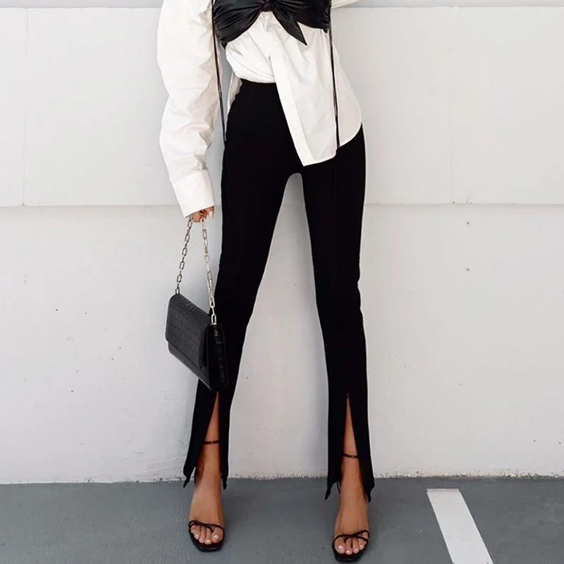 Style 1Elastic Zipper Split Women's Pants Fashion