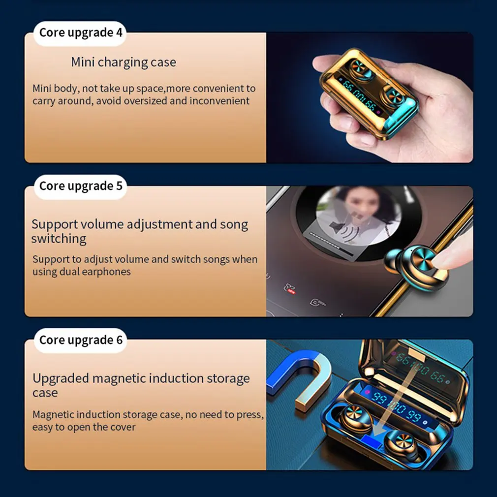 TWS-наушники F9 с поддержкой Bluetooth и сенсорным экраном 5,0 дюйма