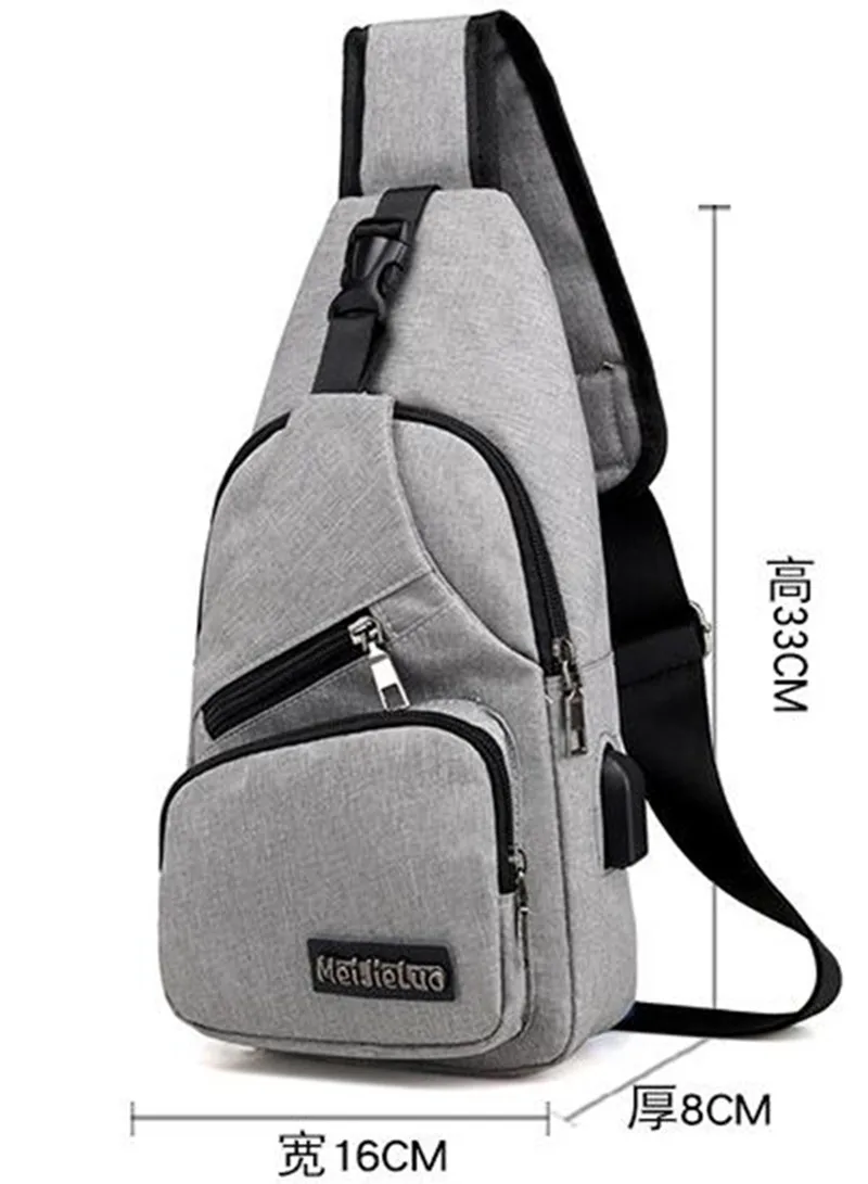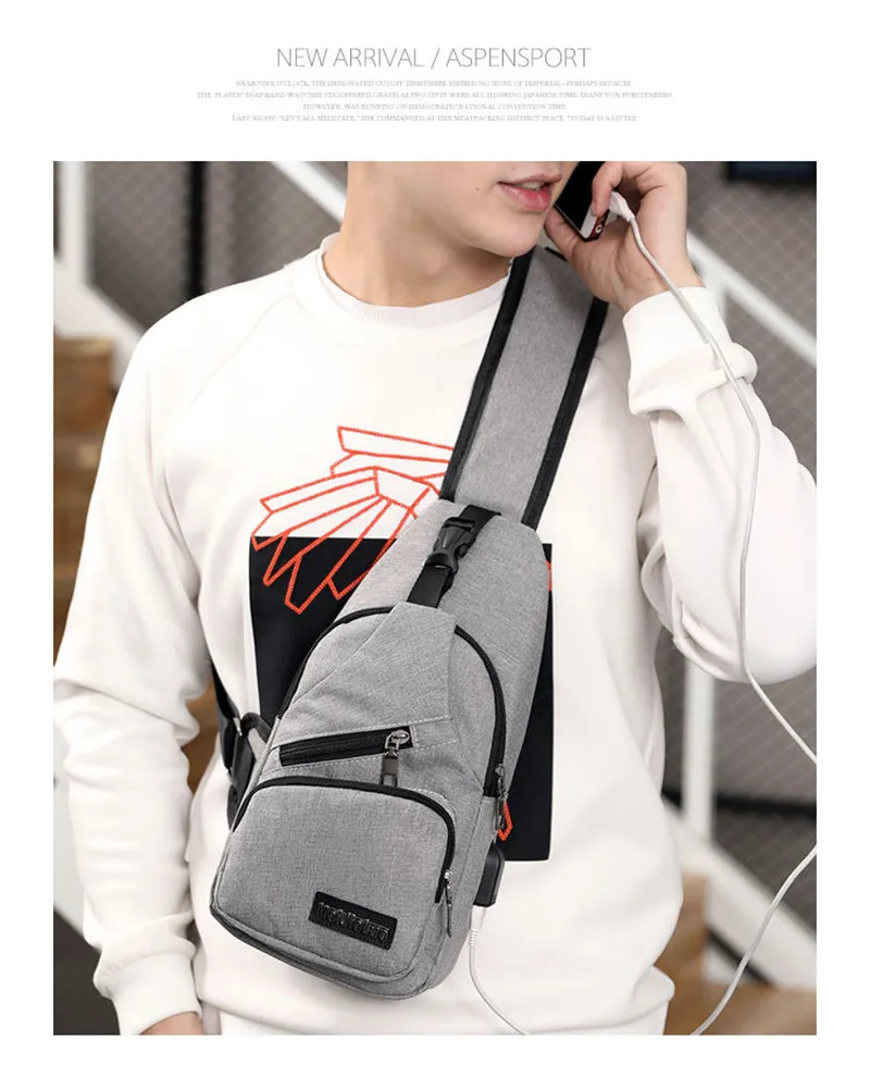 Опишите:Горячая Распродажа, сумки через плечо для мужчин, USB зарядка, сумка через плечо, Мужская противокражная нагрудная сумка, школьная Летняя короткая сумка-мессенджер