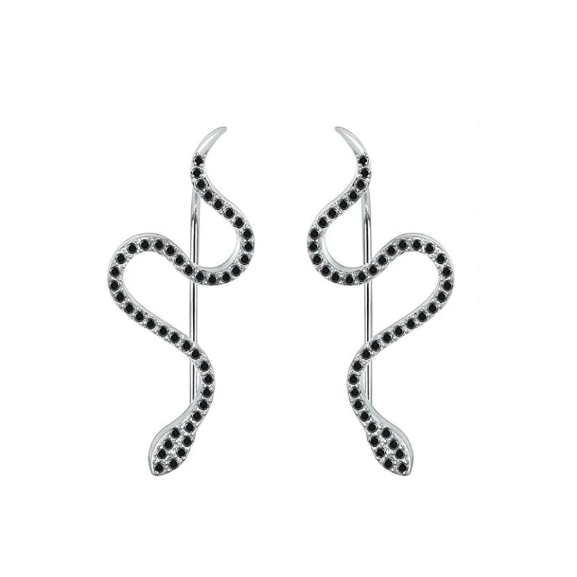 Женские серьги-подвески в виде змеи, серьги из стерлингового серебра 925 пробы с шпинелем черного цвета, подарок I198